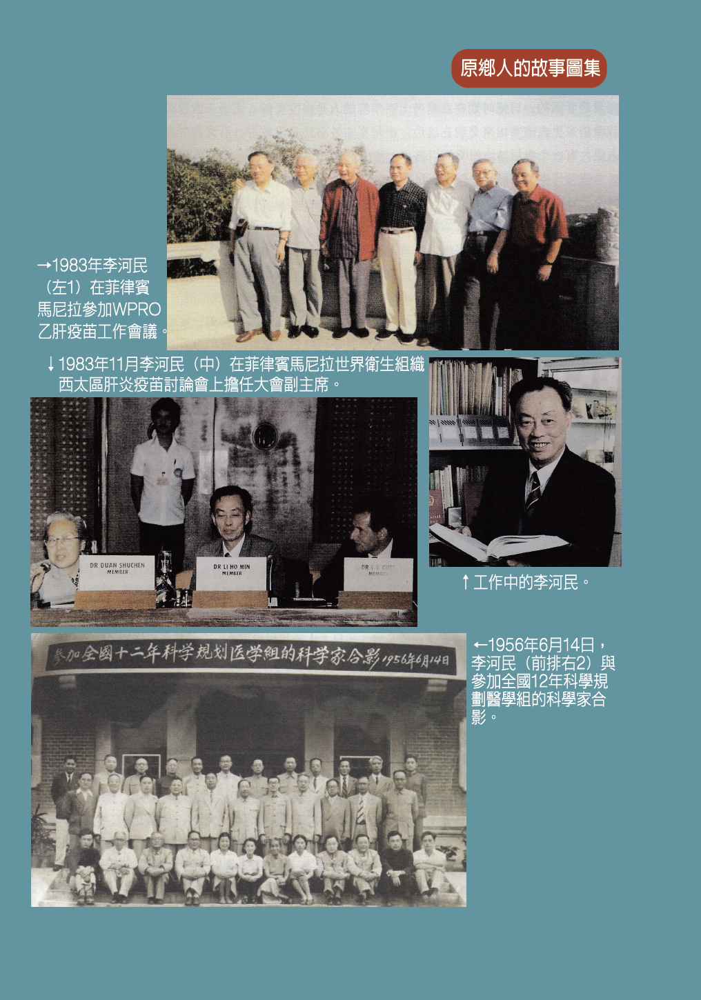 李河民鑽研防疫及疫苗研製工作,1955年,提出研製乙型腦炎活疫苗,1986年攻克難關,疫苗株研究成功,屬全球首創。但當時仍有不少人懷疑疫苗的安全性,李河民因此決定先在自己和自己孩子身上實驗,成功後,再給群眾接種。他說:「妻子很理解,支持我。」「有人問過我,給自己和孩子接種疫苗害怕不害怕,其實我是一點都不擔心的。從實驗資料已經看到了安全性是有把握的,我很有信心。」本文係節自李河民口述,原刊《番薯仔兩岸留痕》(「台海出版社」,北京,2016年4月)。