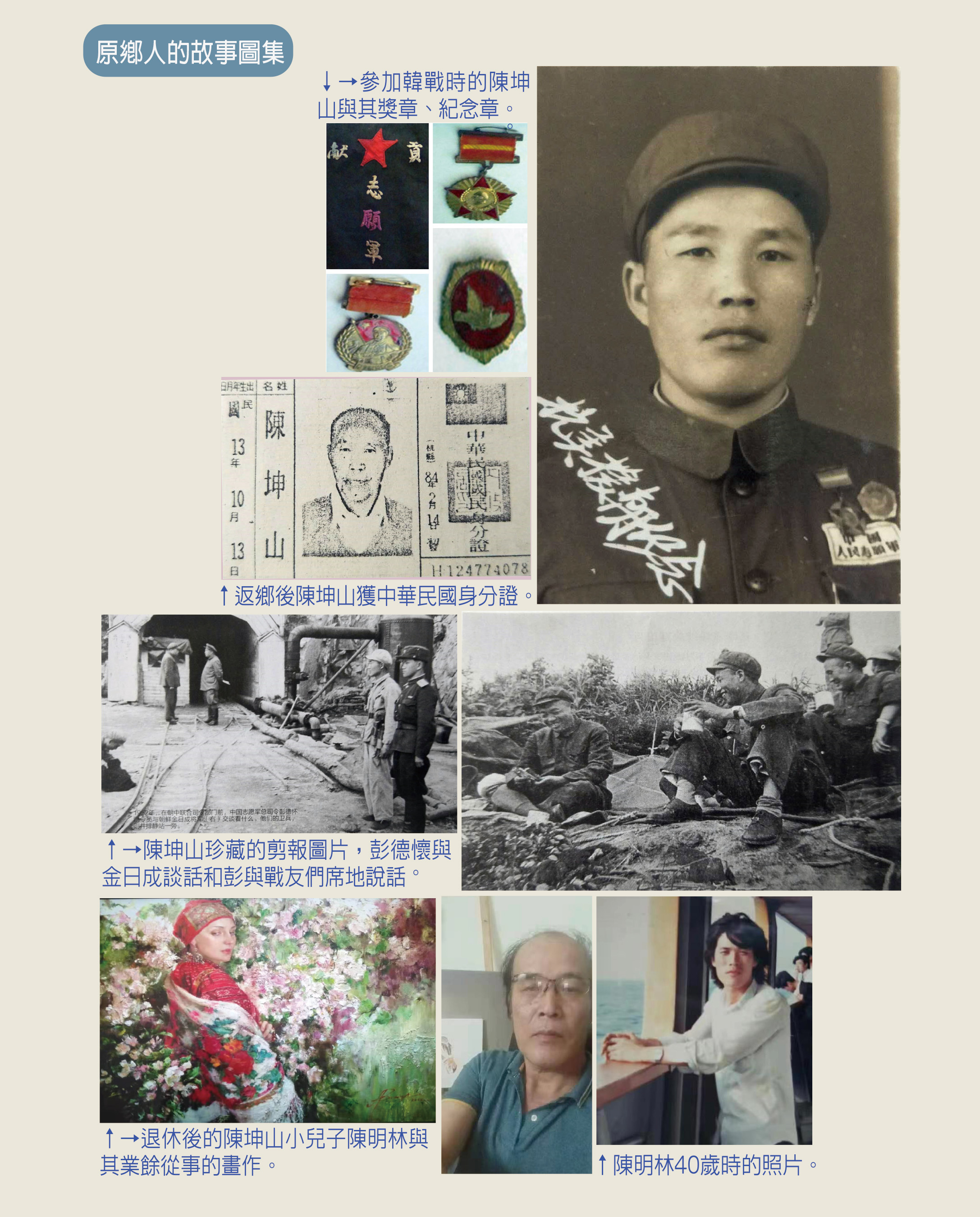 聽了陳明林的這番話,端詳著他發來的這些圖片,陳坤山這個台籍志願軍戰士的形象在我的心中愈發豐滿起來。◆